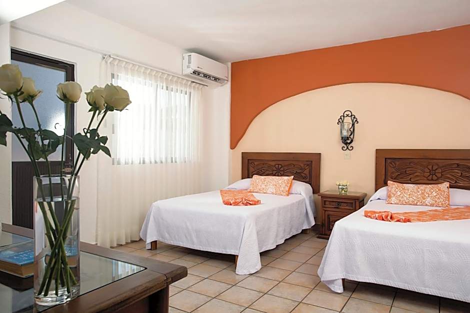 Spacious, air-conditioned room with 2 double beds and a balcony offering views of Puerto Vallarta. In-room amenities include cable TV and a telephone. The private bathroom has a shower.